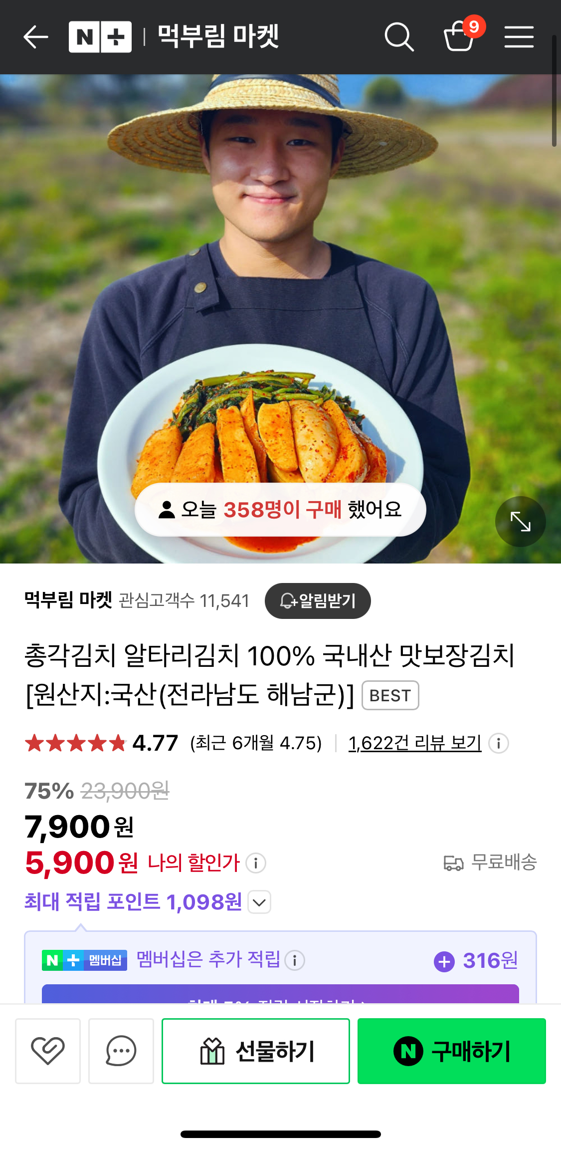 [네이버]국내산 총각김치 당일제조 핫딜(5,900원/무배) > 국내핫딜