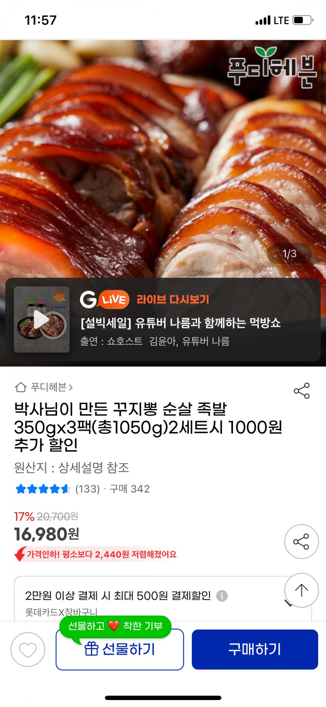 [지마켓] 박사님이 만든 꾸지뽕 순살 족발 350gx3팩 (16,980원/무배)