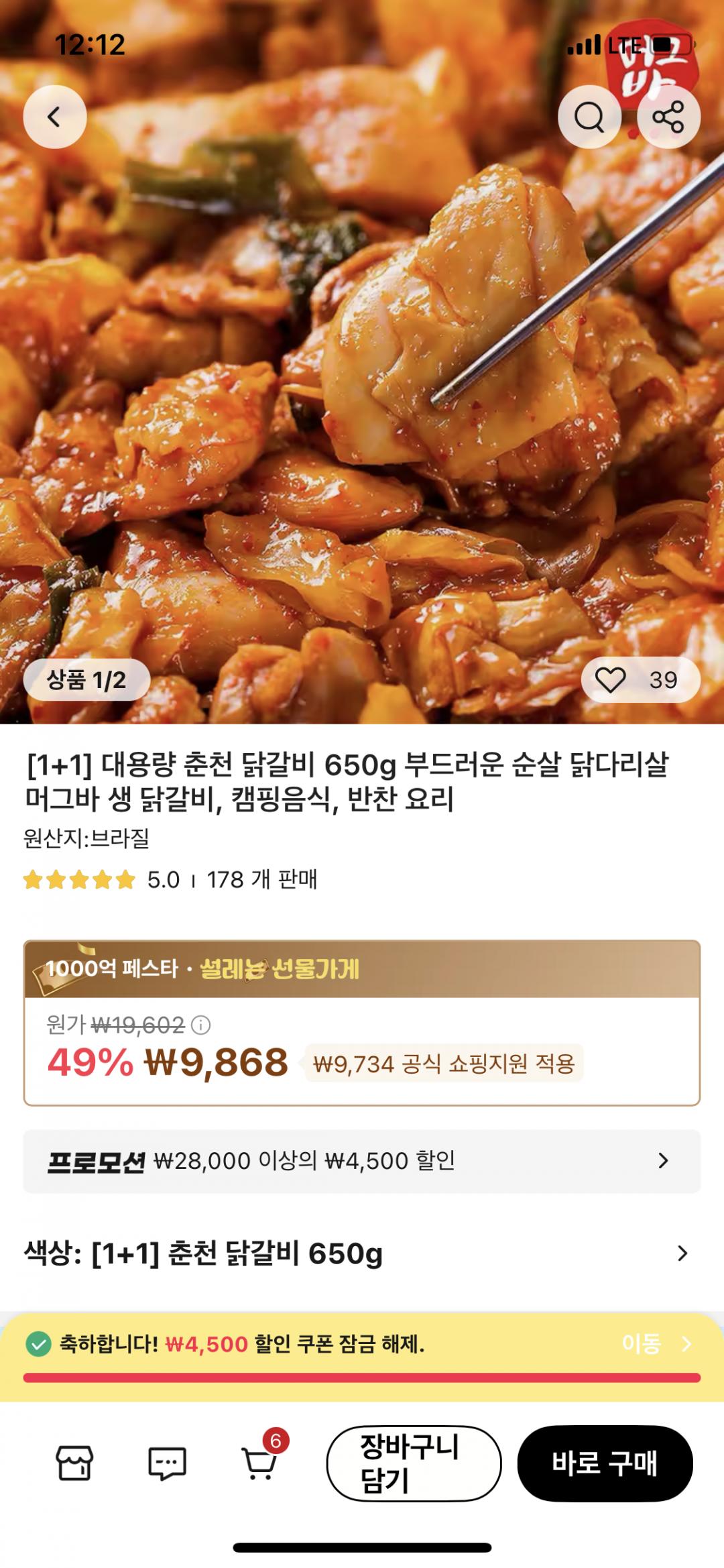 [알리] 춘천 닭갈비 650g 1+1 (9375원/무배) > 국내핫딜