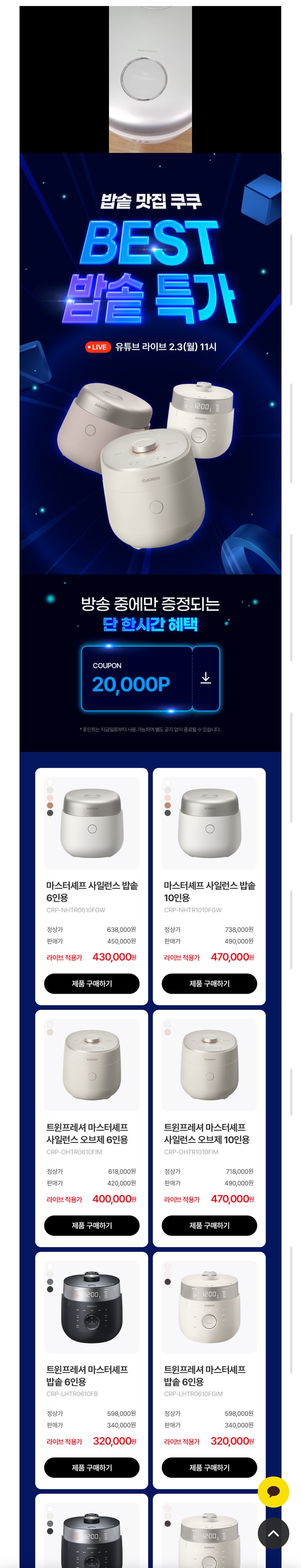 유튜브 쿠쿠 채널서 11시부터 라이브 할인 중이네요