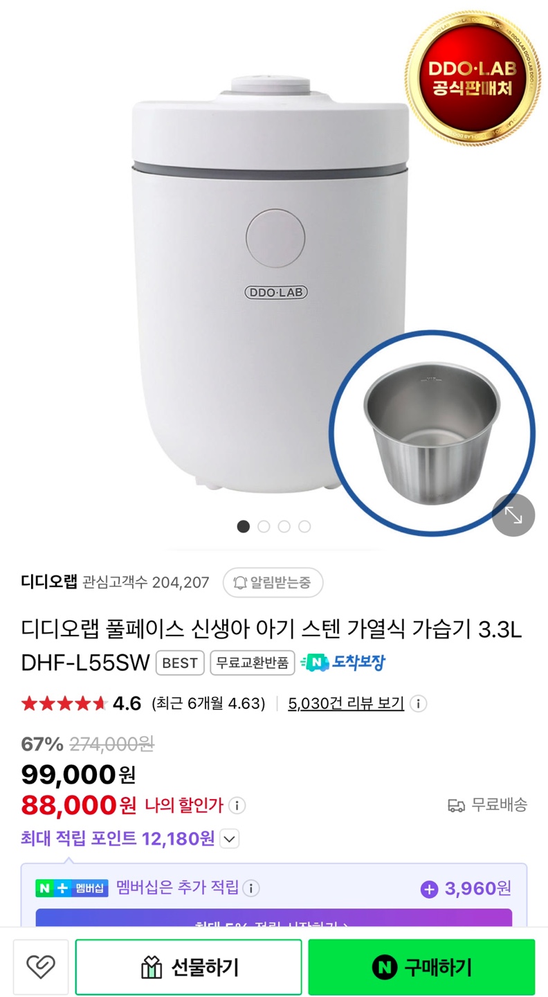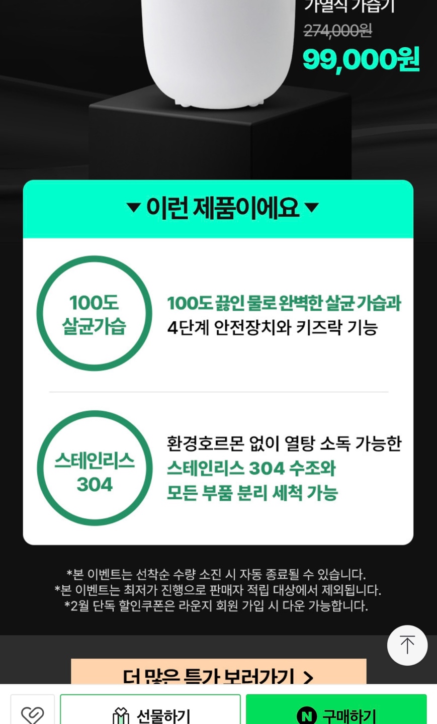 [네이버] 풀페이스 스텐304 가열식 가습기 3.3L (88,000원/무료)