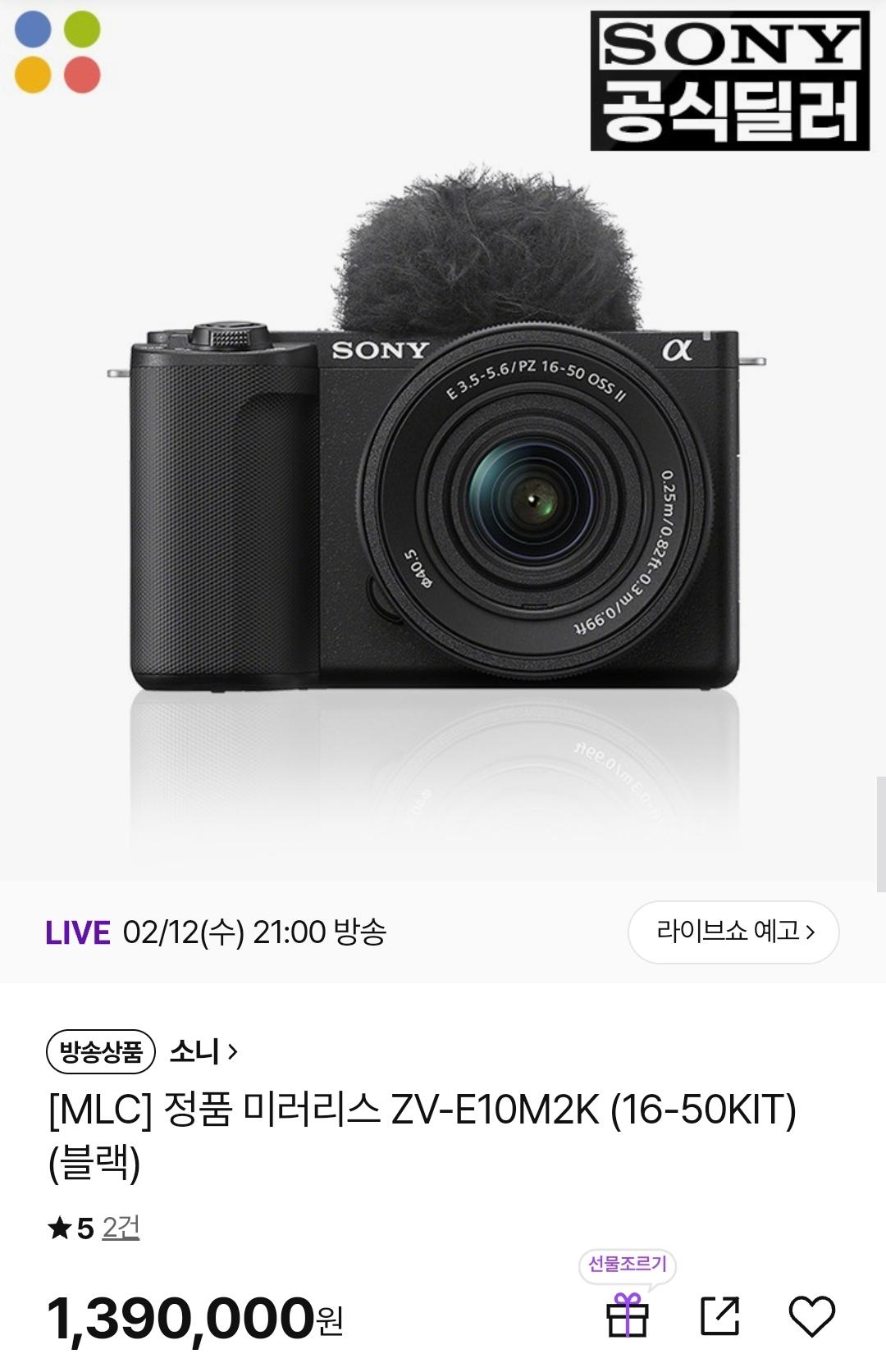 [CJ온스타일] 정품 미러리스 ZV-E10M2K 16-50KIT 블랙(1,390,000원/무료) > 국내핫딜
