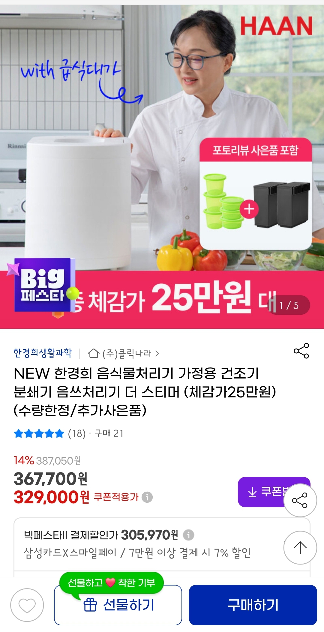 [지마켓] 한경희 음식물처리기 더스티머 (305,970원/무료배송) > 국내핫딜