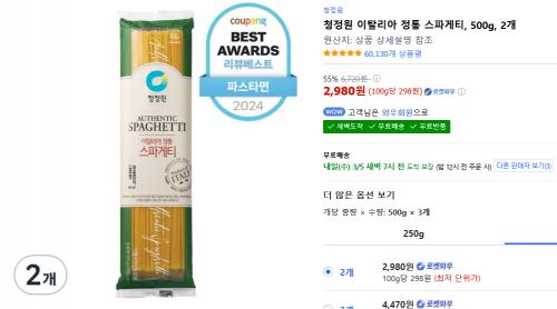 [쿠팡] 청정원 이탈리아 정통 스파게티 (2,980/와우무료)