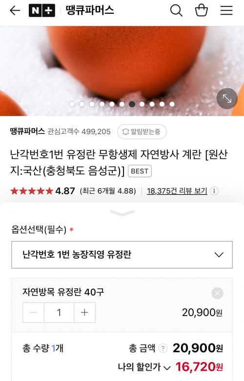 [네이버] 난각1번 무항생제 유정란 40구 (16,220원/무배) > 국내핫딜