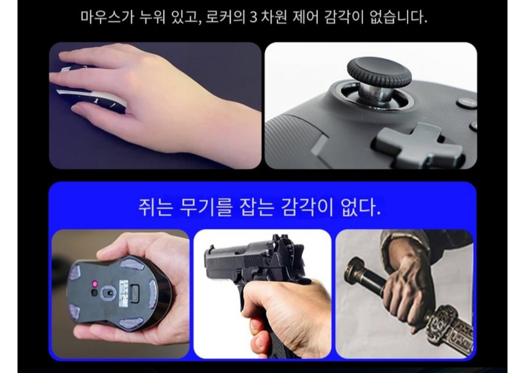 총기형으로 되어있어서 실제 무기 들고있는 기분이기도해서 관련 게임하시는분들이 사용하기에는 좋습니다.