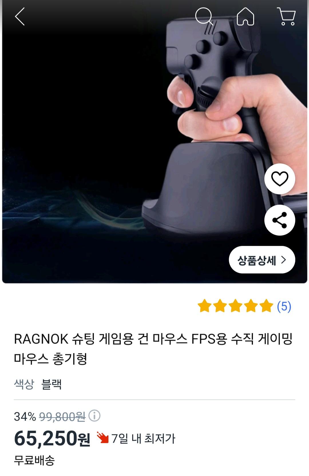 [쿠팡] RAGNOK 슈팅 게임용 건 마우스 FPS용 수직 게이밍 마우스 총기형 (65,250원/무료) > 국내핫딜