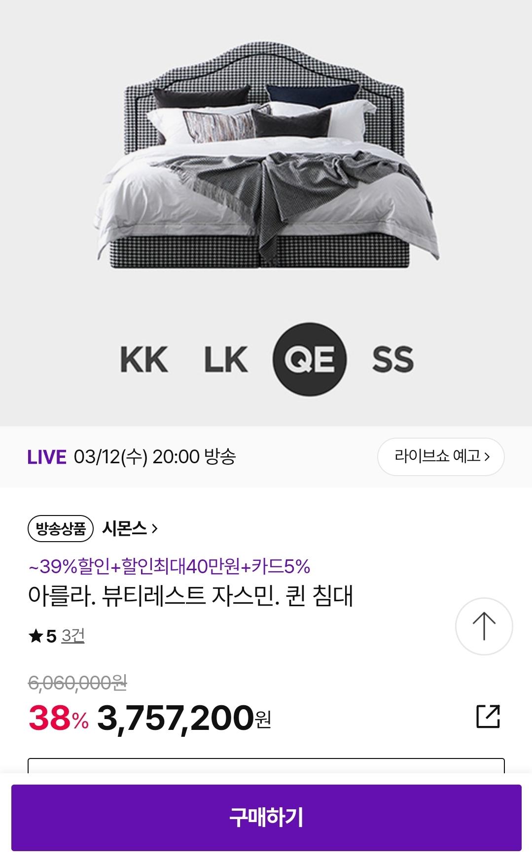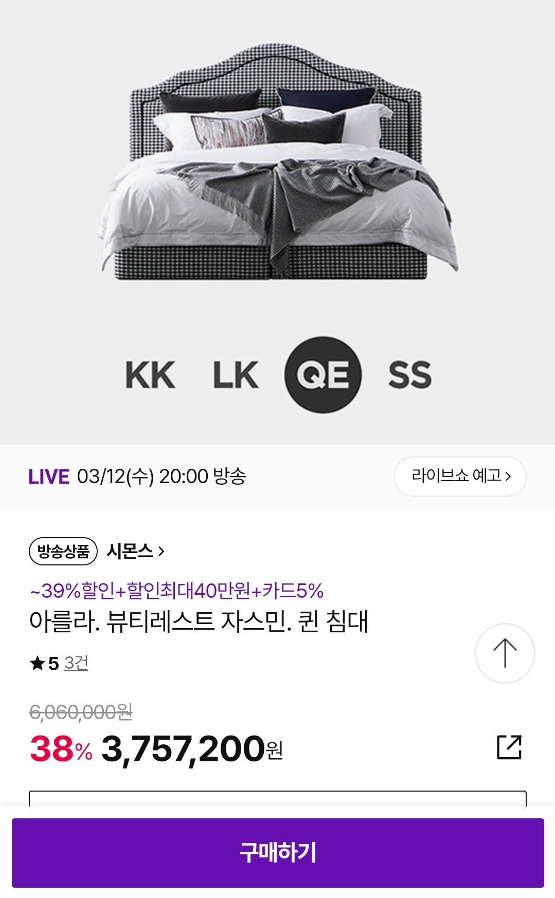 [CJ온] 시몬스 아를라 뷰티레스트 자스민 퀸 침대 (3,757,200원/무료)