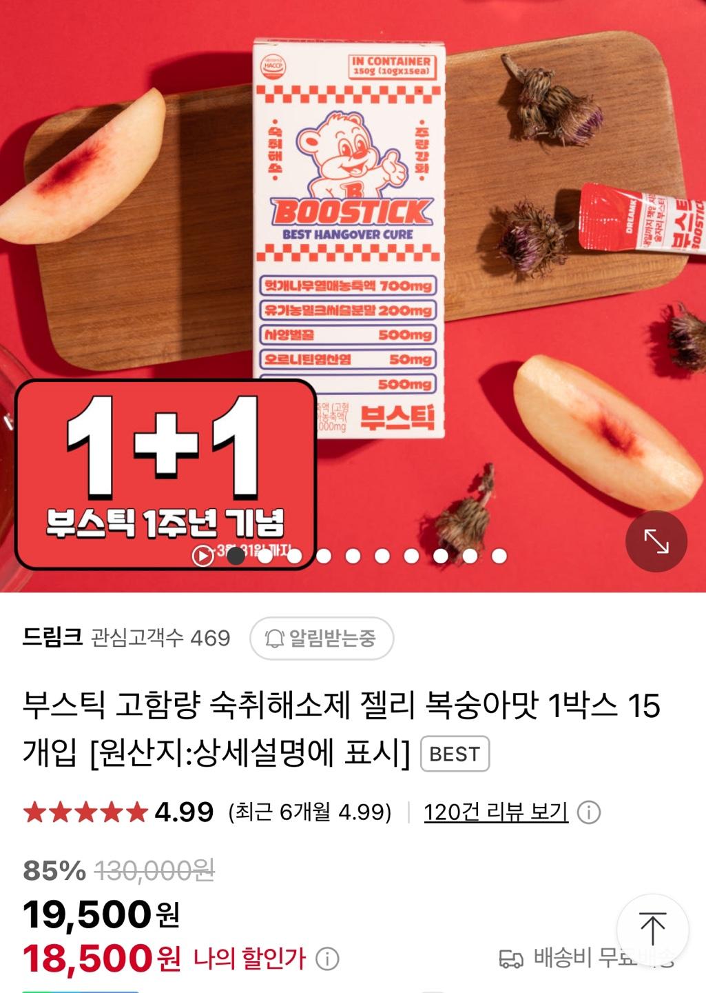 [네이버]부스틱 고함량 숙취해소제 젤리 복숭아맛 1박스 15개입 1+1(18500/무배) > 국내핫딜