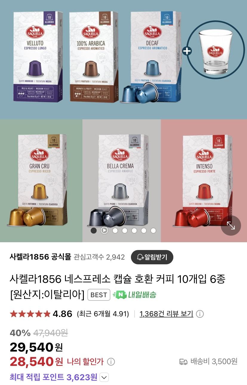 [네이버] 사켈라1856 네스프레소 캡슐 호환 커피 10개입 6종 + 에스프레소 잔 증정 (28,540원 / 무료) > 국내핫딜