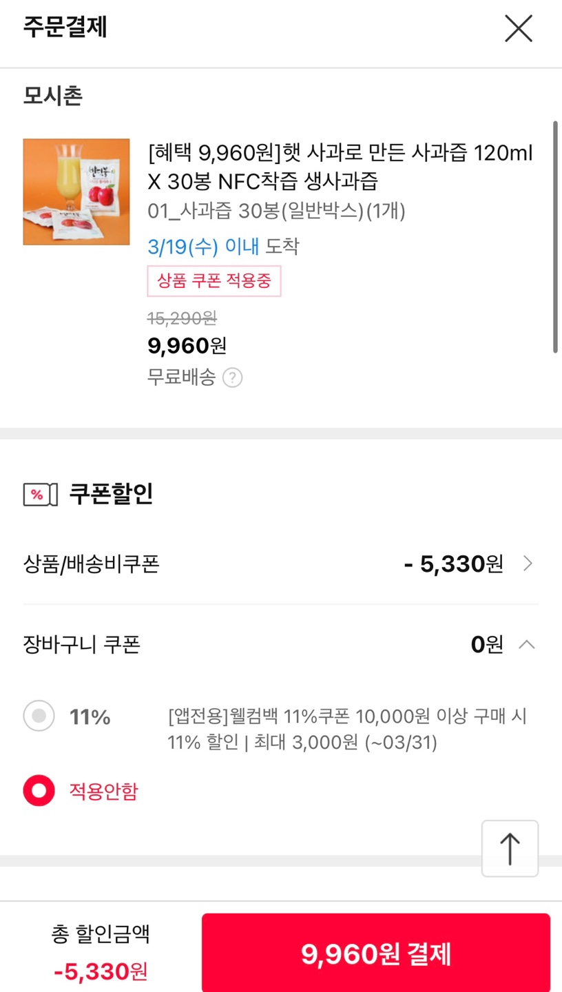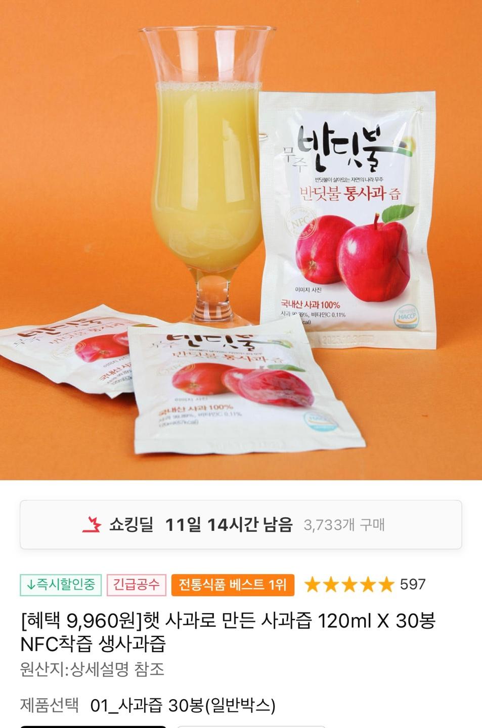 [11번가] 무주 반딧불 통사과로 만든 사과즙 9,960원,무배