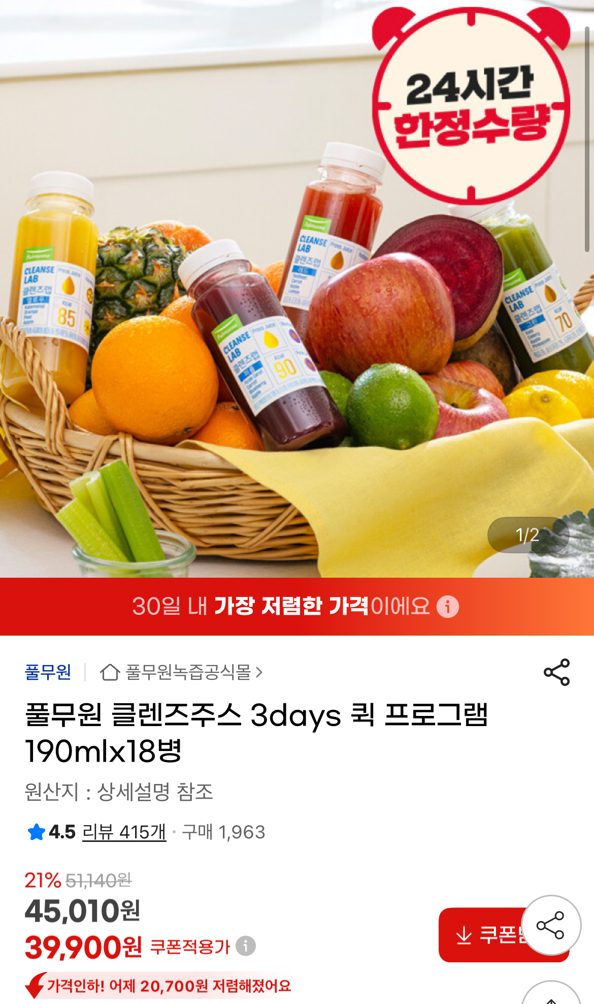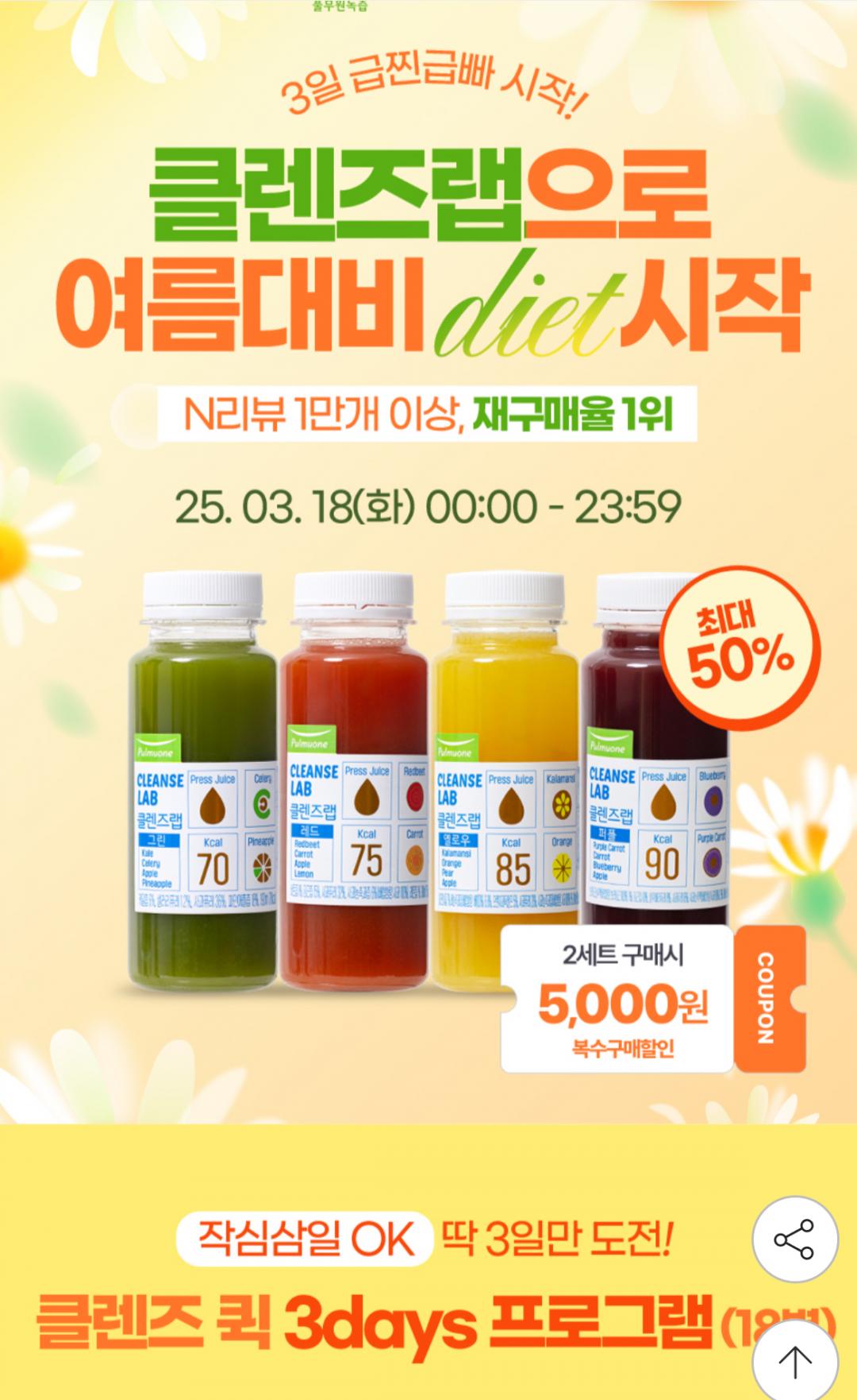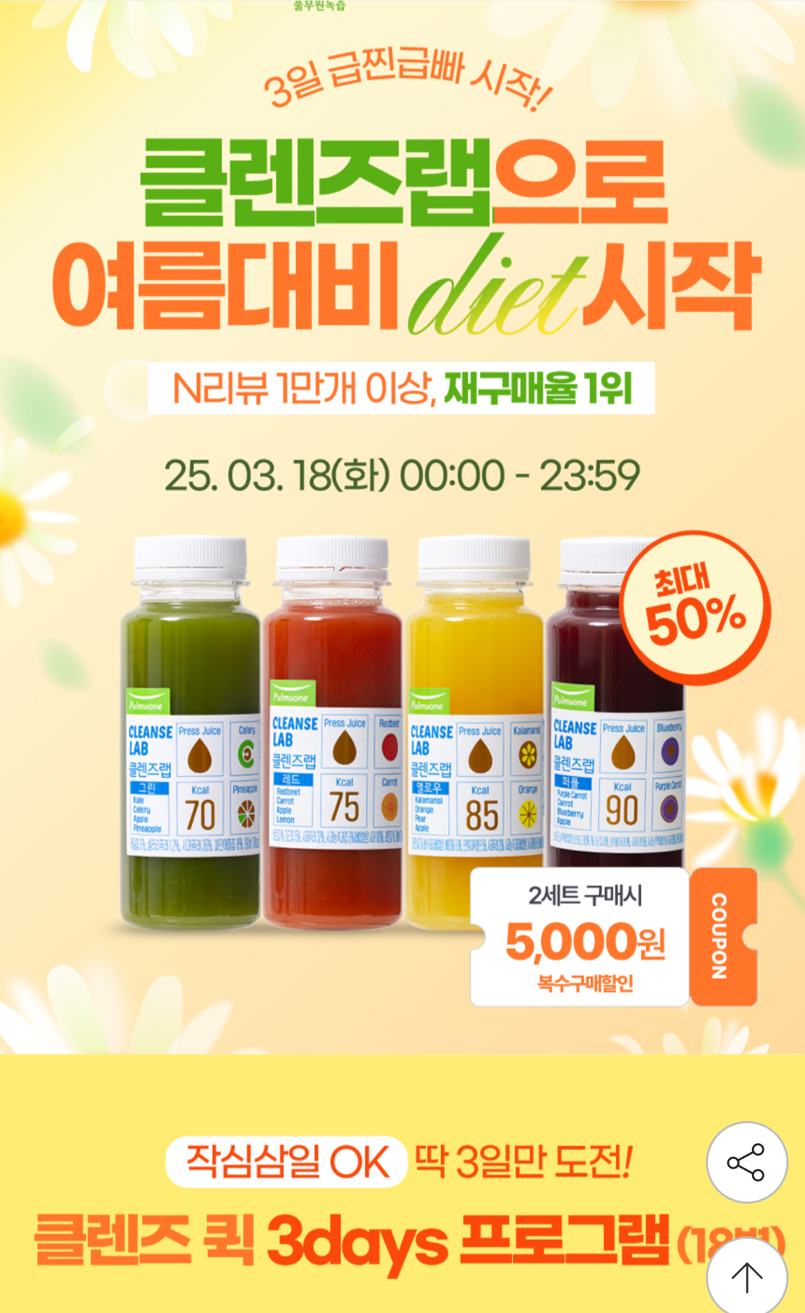 [지마켓] 풀무원 클렌즈주스 190ml 18병 (39,900원/무배) > 국내핫딜