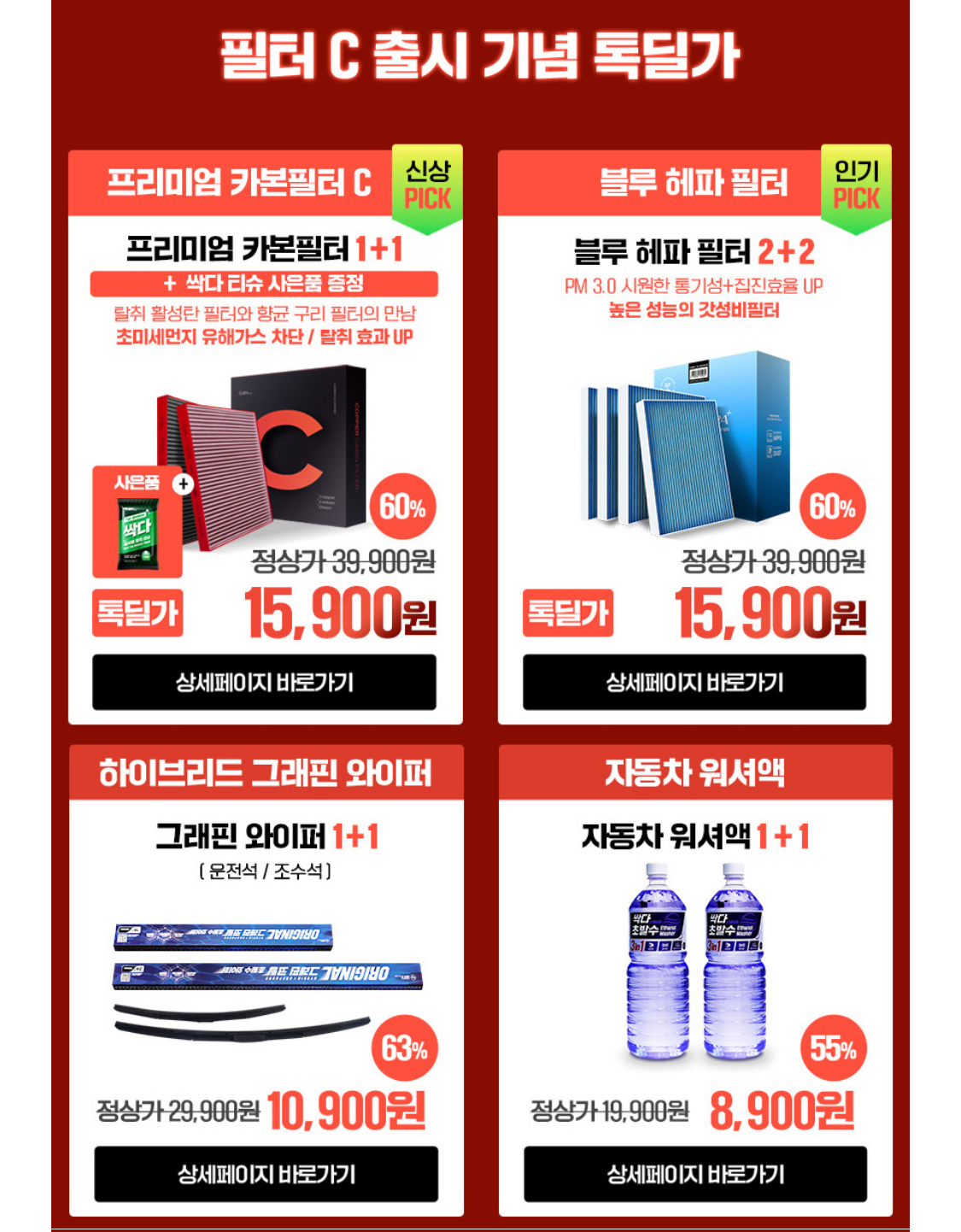 [톡딜] 자동차 에어컨 필터, 차량 소모품 할인 모음(8,900원~/무배)