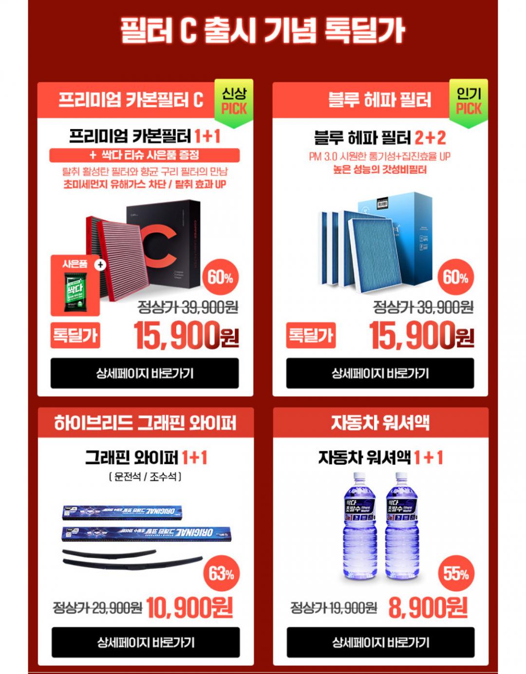 마침 카카오톡 메인 톡딜에 차량용 에어컨 필터랑 소모품 모음전이 떠서 공유해요!