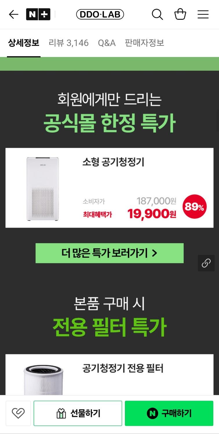 [네이버] 헤파필터H13 소형 공기청정기 (18,900원/무료)