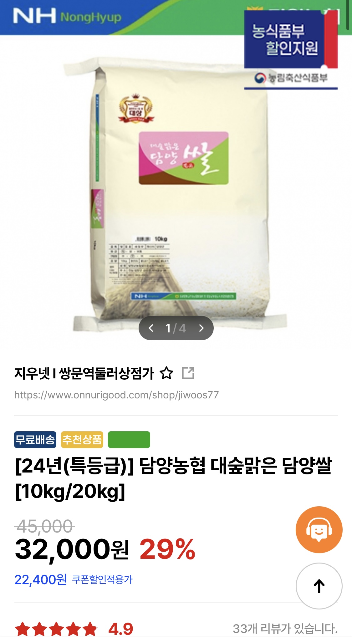 [온누리] 특등급 24년 담양농협 대숲맑은 담양쌀 10kg/20kg 30%할인 (22,400원/무료) > 국내핫딜