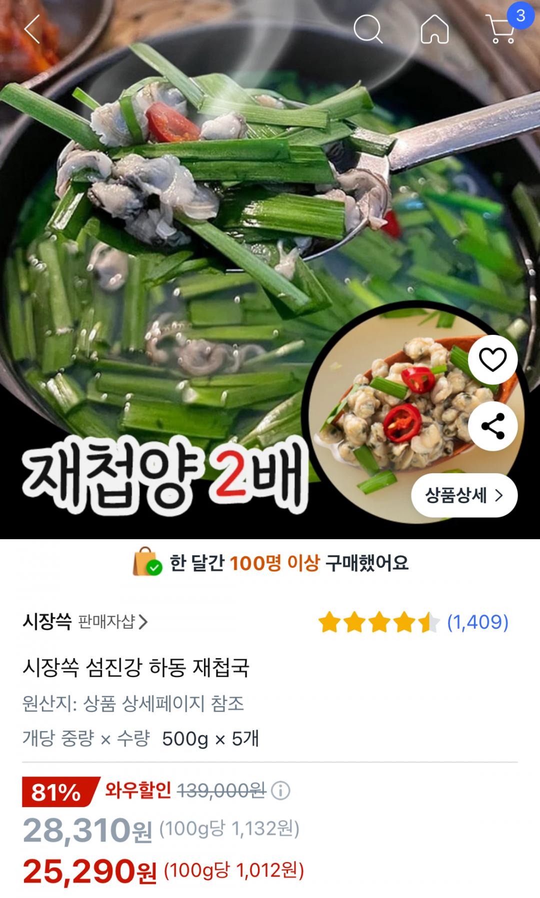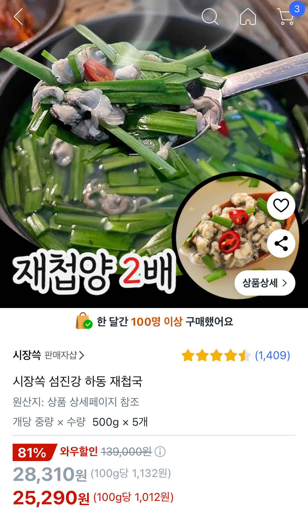 섬진강에서 직접 채취한 재첩국 500g 5팩