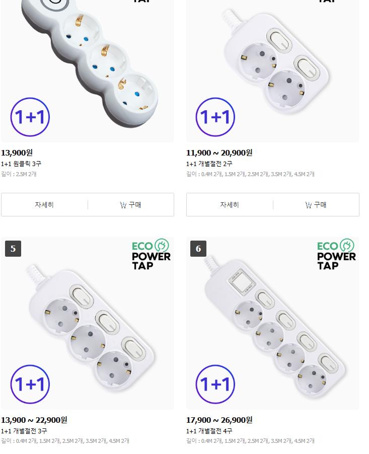 [카톡딜] 1+1 국산 멀티탭 과부하차단 절전형 (4,900원/무료) > 국내핫딜