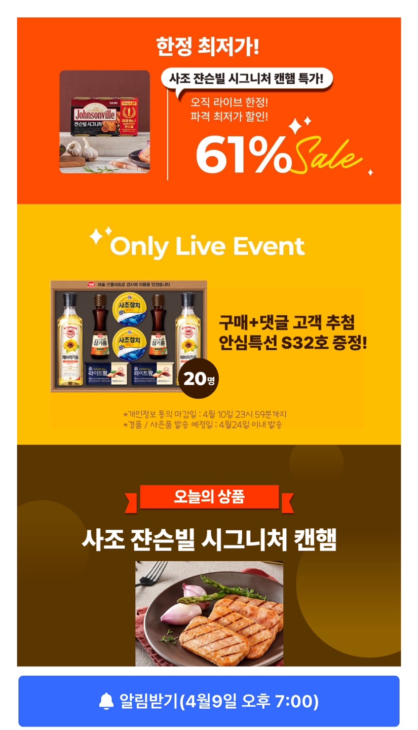오늘 쟌슨빌 캔햄 특가 라이브 행사하네요