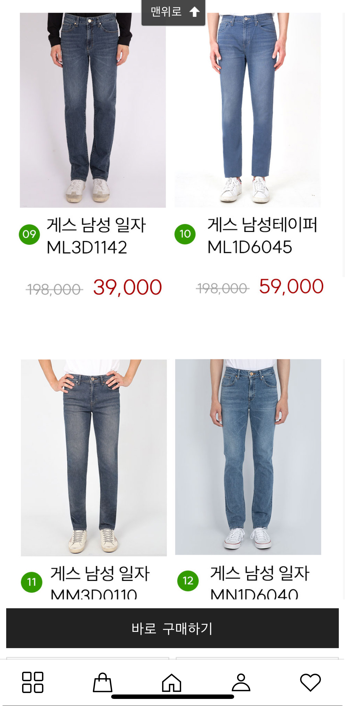 게스 청바지 3.9만원대부터 있어서 가격 저렴하네요