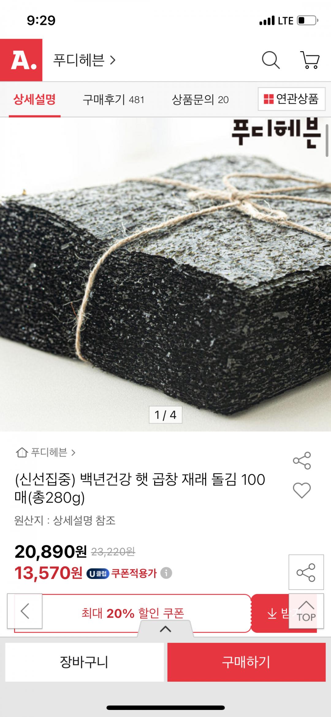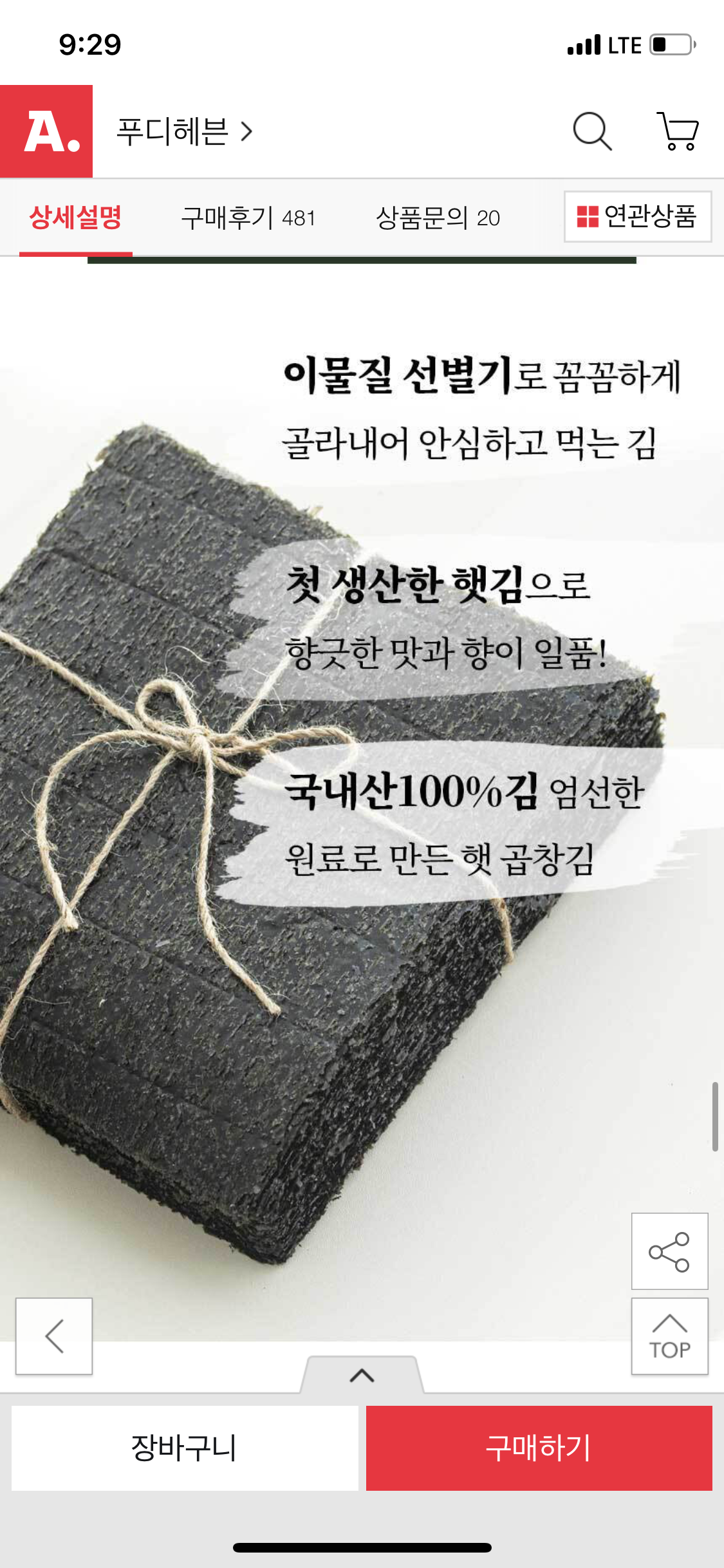 [옥션] 백년건강 햇 곱창 재래 돌김 100매(총280g) (13570원/무배) > 국내핫딜