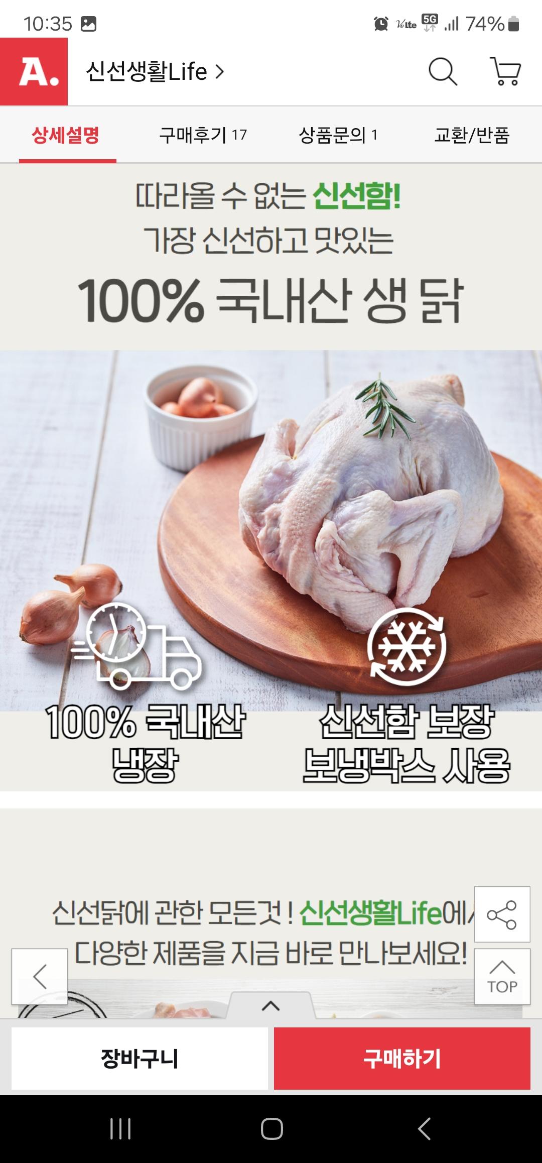 [옥션] 국내산 냉장생닭 1kg+1kg 10,710원 무배 > 국내핫딜