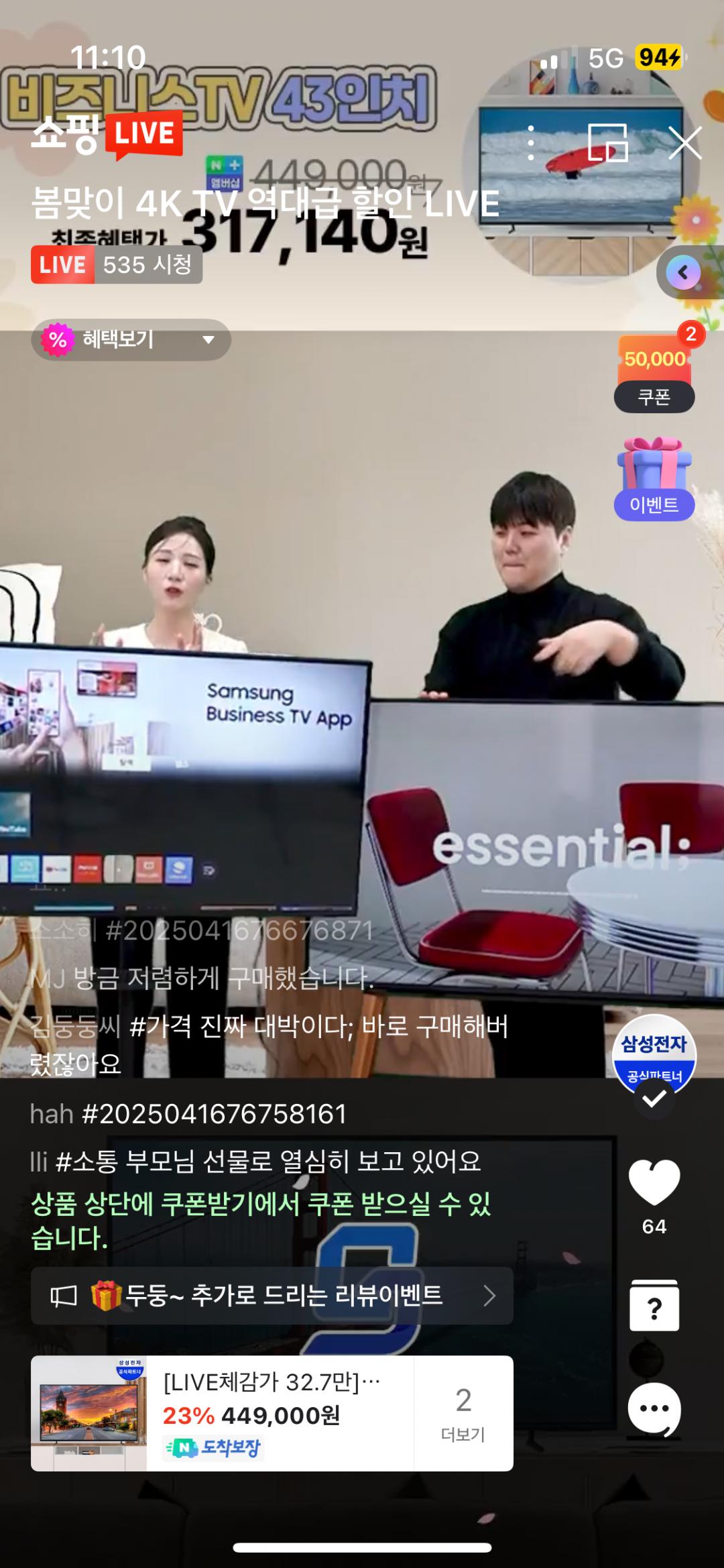 오늘 오전 11시-12시, 오후 2시-3시에 삼성 비즈니스 TV 라이브 한다네요