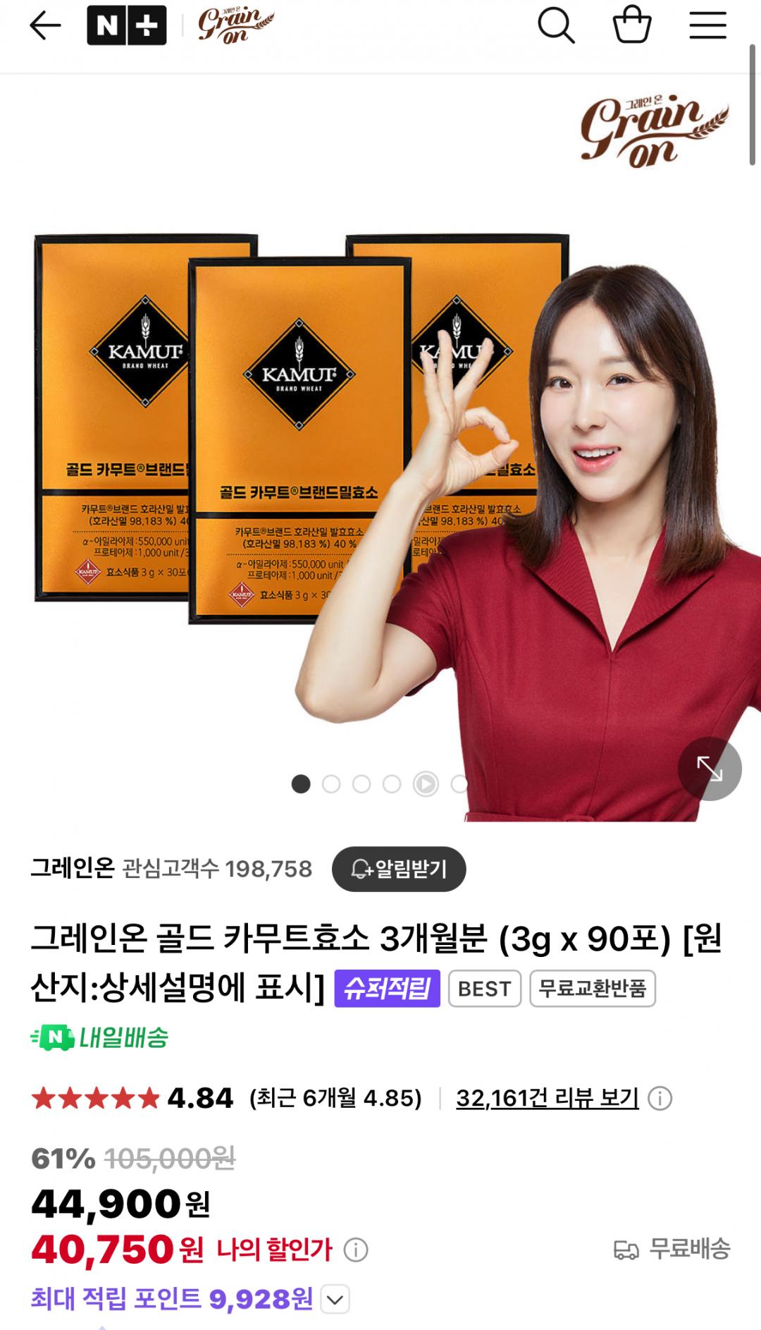 [네이버]그레인온 골드 카무트효소 3개월분 (3g x 90포) (40,750원/무배) > 국내핫딜