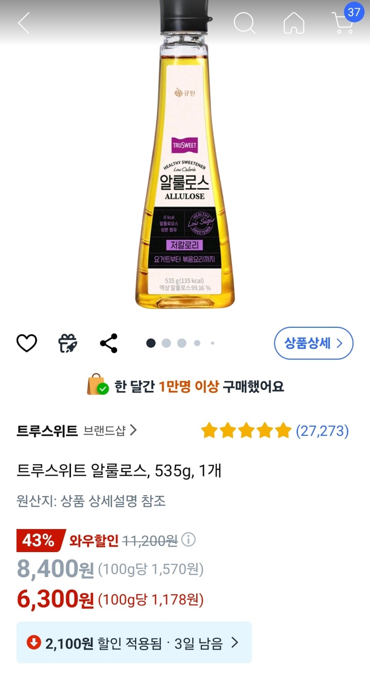 설탕 대신 사용하기 좋고, 다이어트 중에도 부담 없이 쓸 수 있어 유용해요.