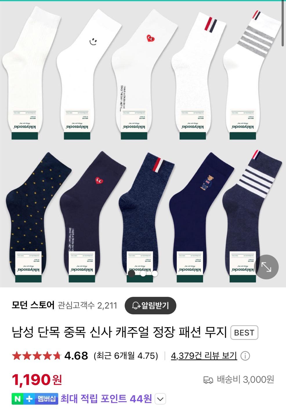 [네이버] 국산 양말 남성 단목 중목 양말 (1,190원/2만이상무배) > 국내핫딜