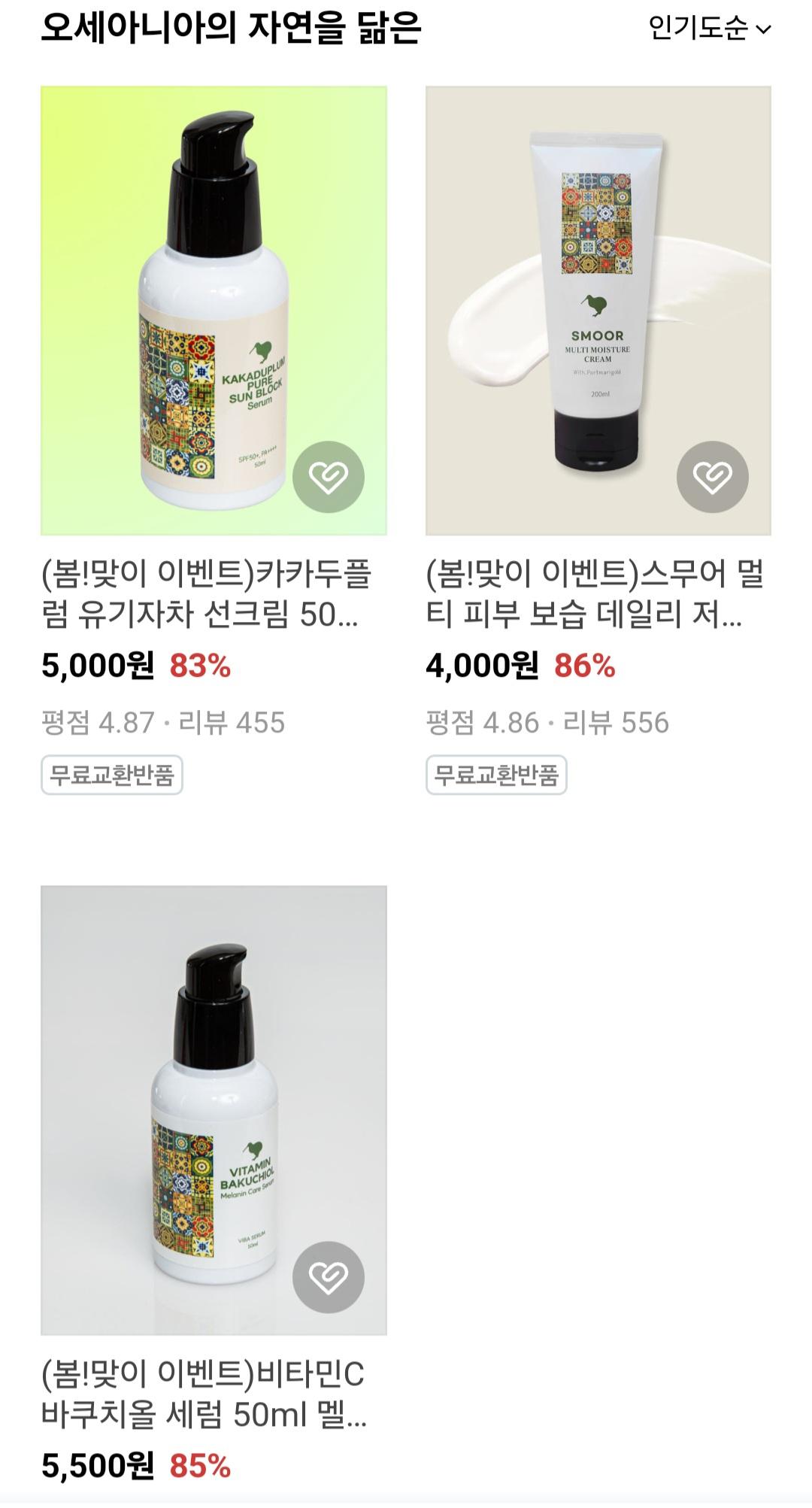 비타민 세럼, 모이스처 크림, 썬크림 등 가격 저렴하네요