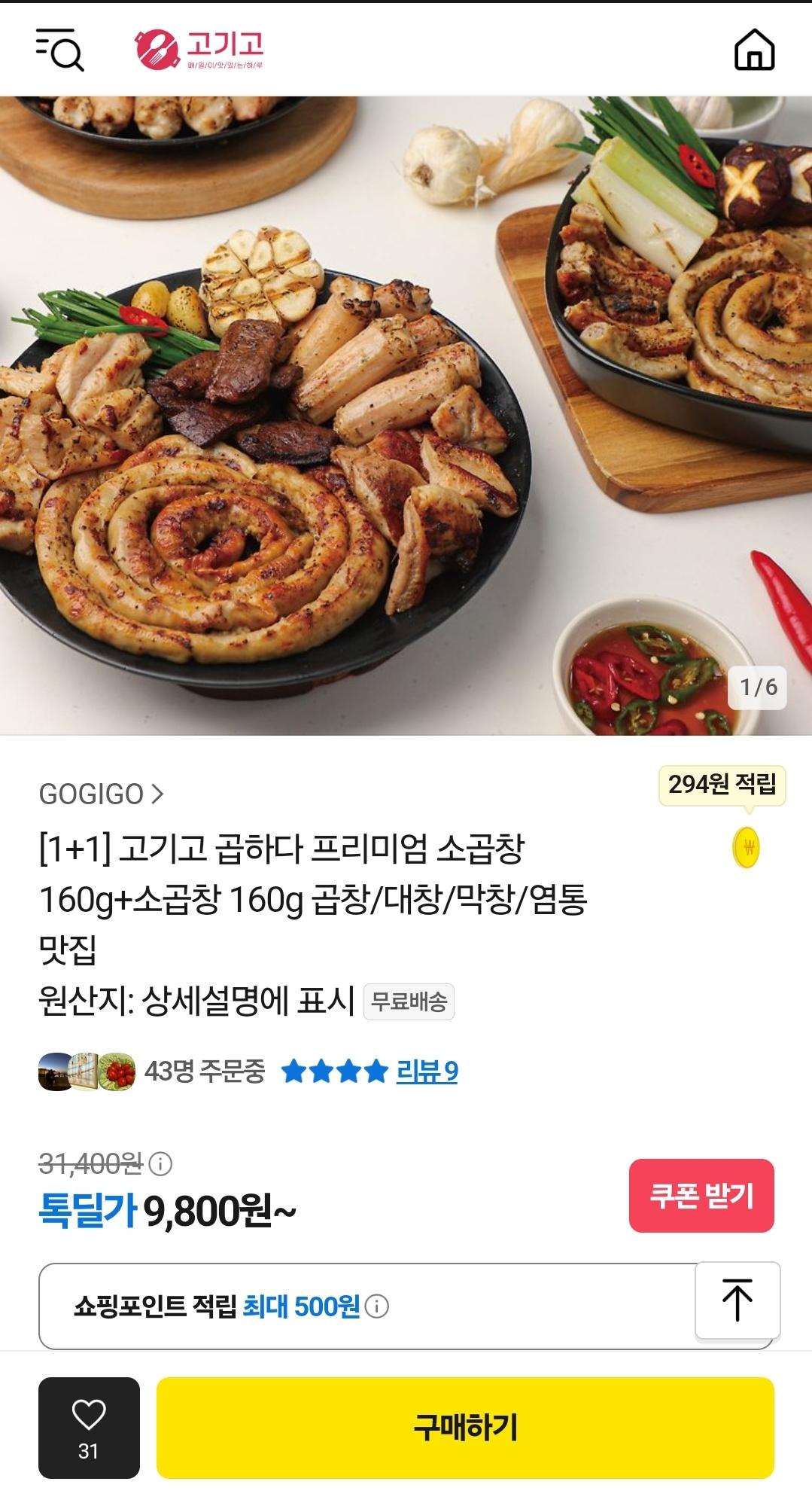 [카톡딜] 1+1 고기고 곱하다 소곱창 160g+160g 2팩 (9,800원/무료) > 국내핫딜