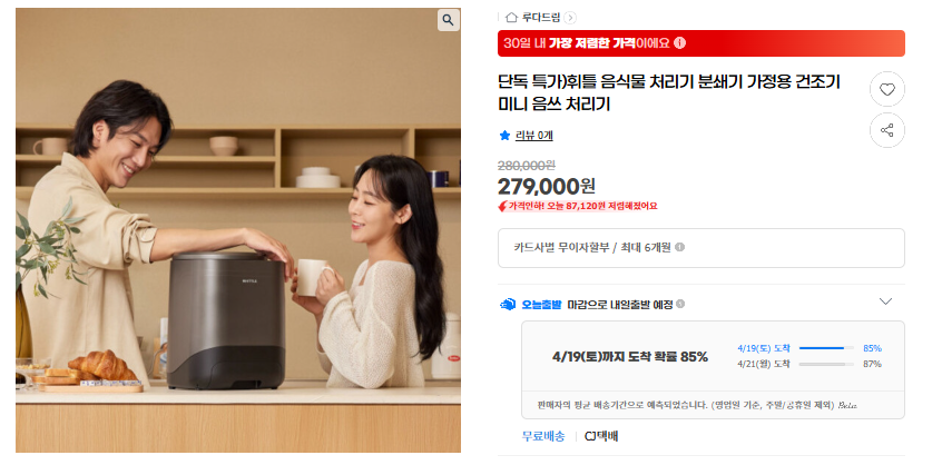 [톡딜]휘틀 음식물 처리기 분쇄기 가정용 건조기 미니 음쓰 처리기 > 국내핫딜