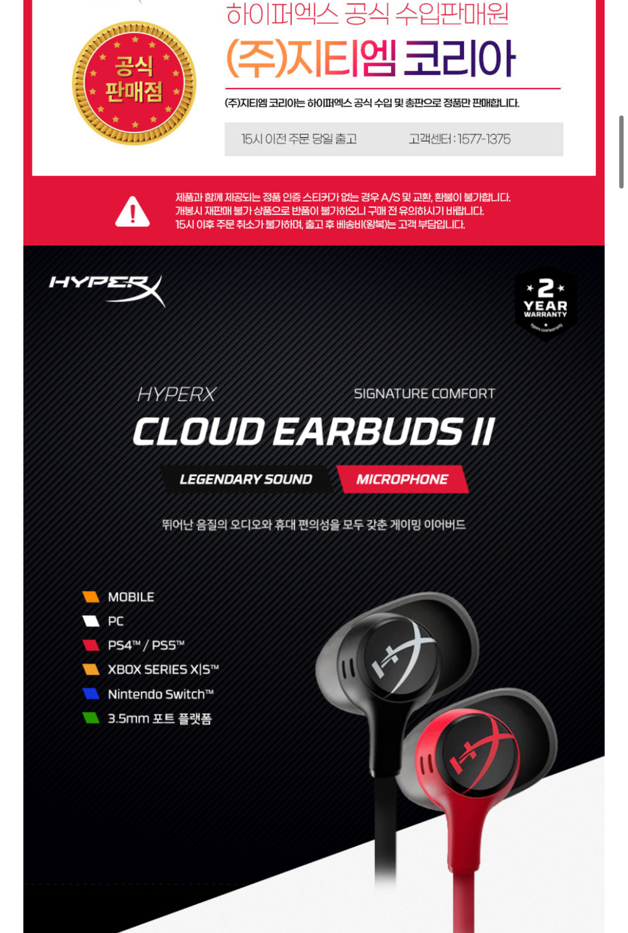 [네이버] 하이퍼엑스 클라우드 이어버즈2 블랙 게이밍 이어폰 (37,000원/무배) > 국내핫딜