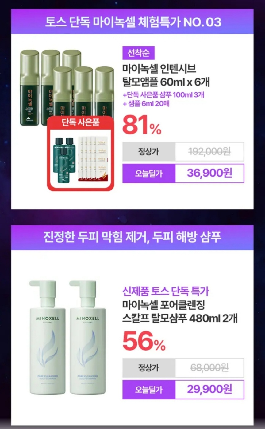 [토스] 현대약품 마이녹셀 탈모샴푸 & 앰플 할인전 (2,900원~ / 2,000원) > 국내핫딜