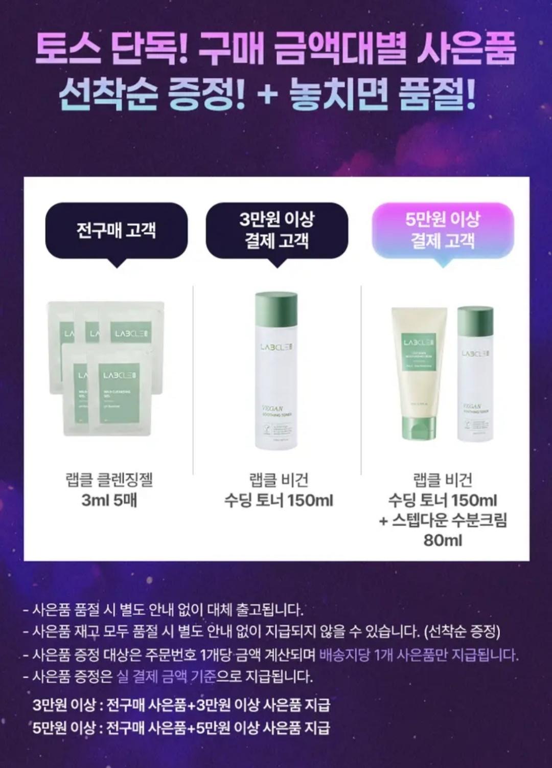 클렌징젤은 기본 사은품이고, 3만원부터 추가 사은품 주어집니다.