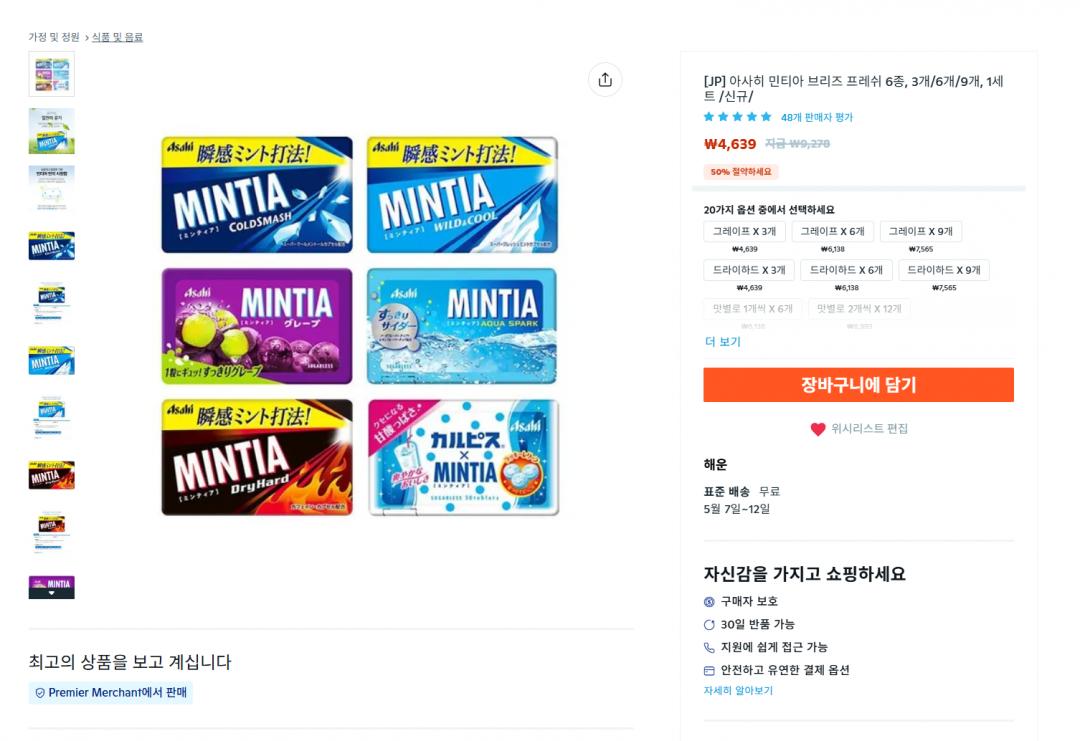 아사히 민티아 캔디 입니다 제가 담배를 펴서 입이 텁텁해서 자주먹습니다 네이버나 쿠팡보다