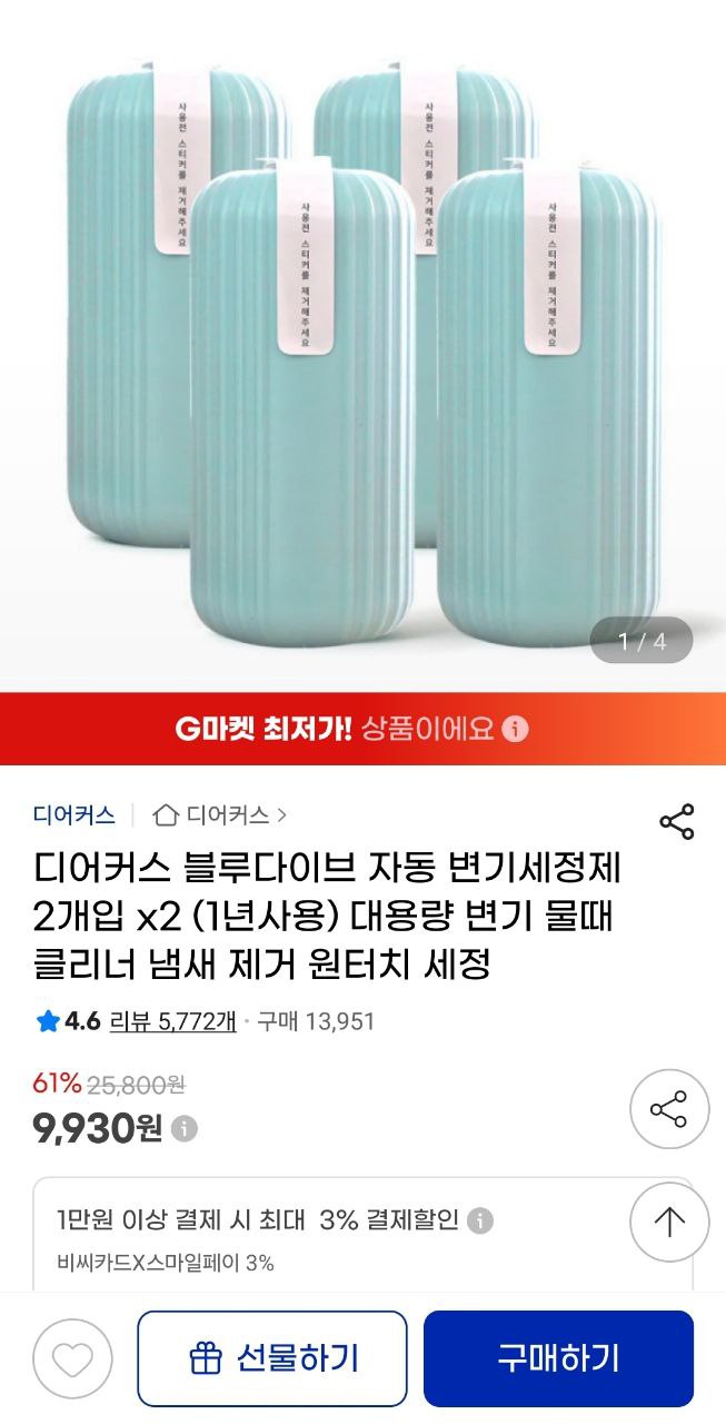 지마켓에 할인떠서 총 4개입 쿠폰적용시 9천원대나옵니다.