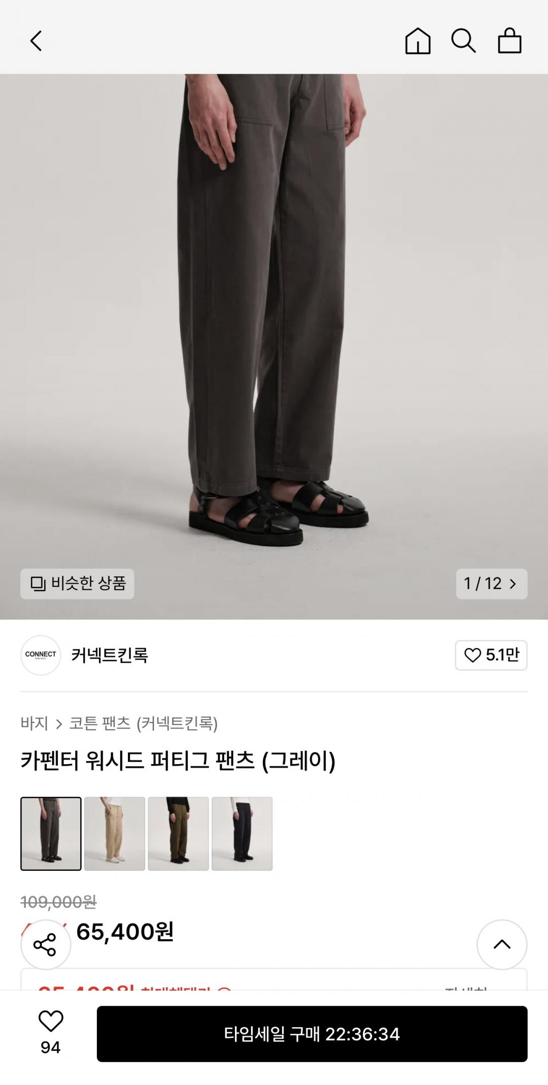[무신사] 커넥트킨록 카펜터 워시드 퍼티그 팬츠 (65,400원/무료)