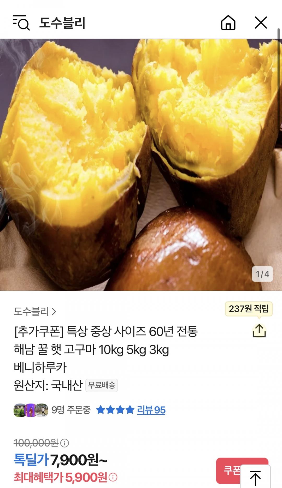 [카카오] 해남 베니하루카 꿀고구마 중상2kg (6,900원/무료) > 국내핫딜