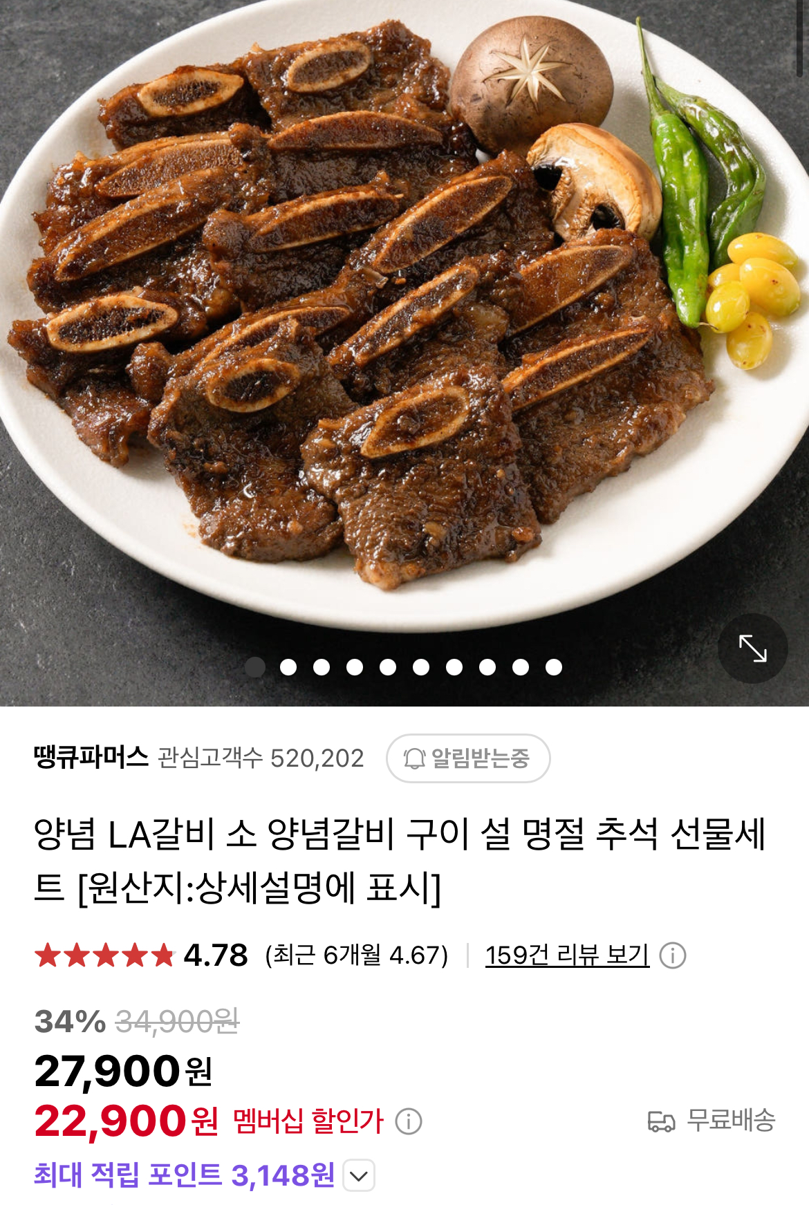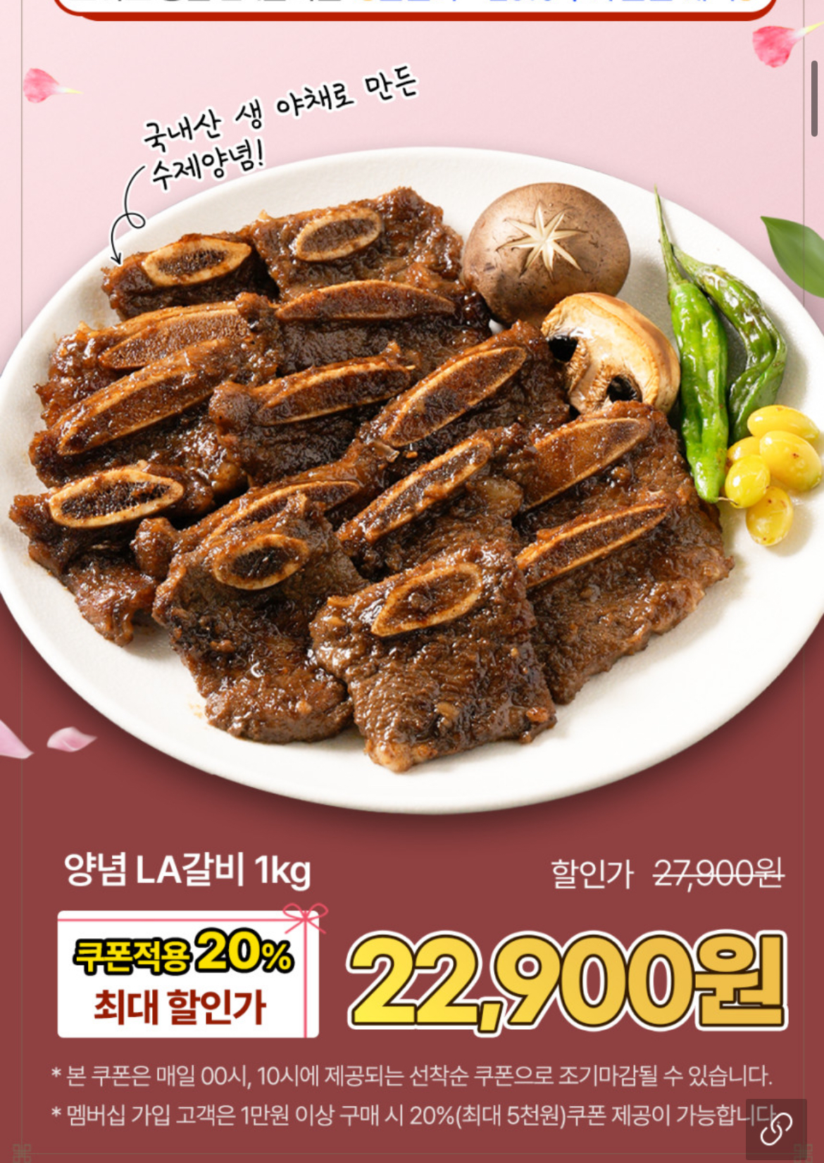 초이스 등급 양념 LA갈비 1kg에 27,900원