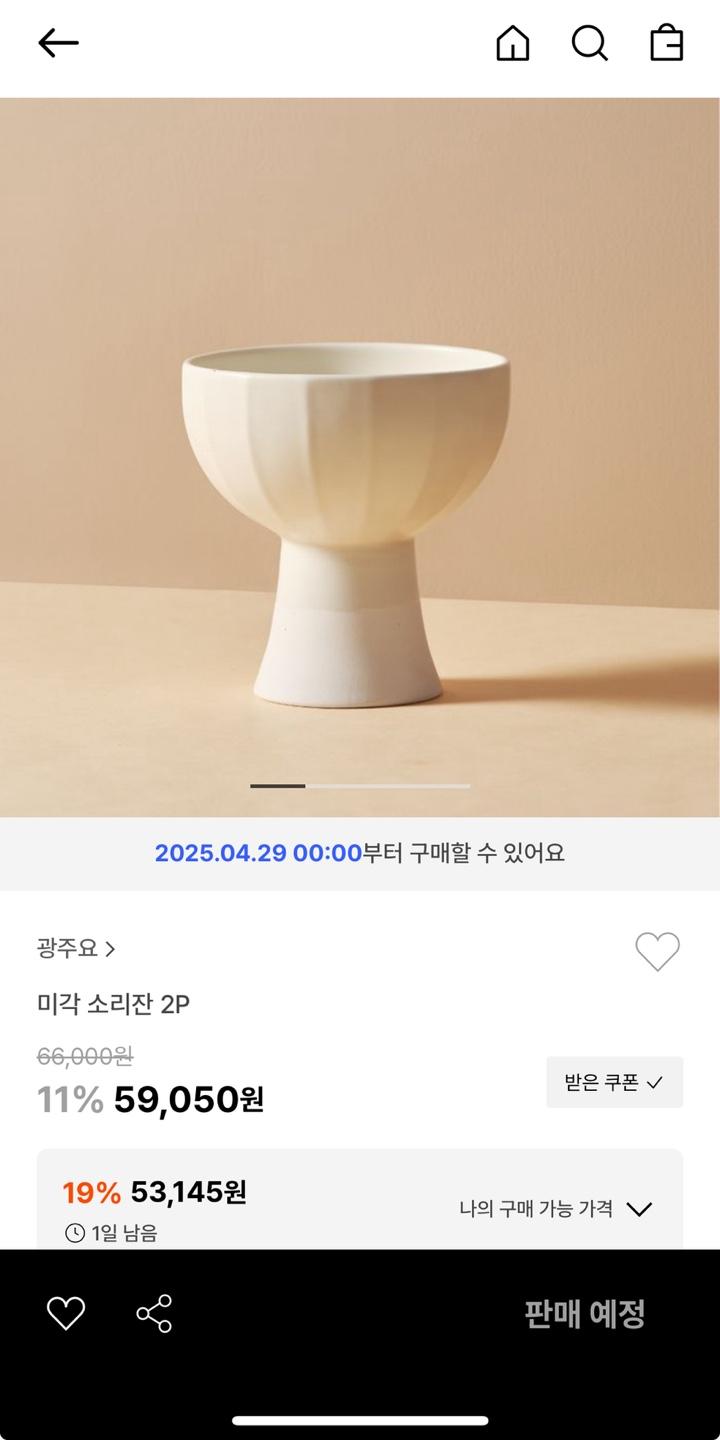 [29CM] 광주요 미각 소리잔 2P (59,050원/3,000원) > 국내핫딜