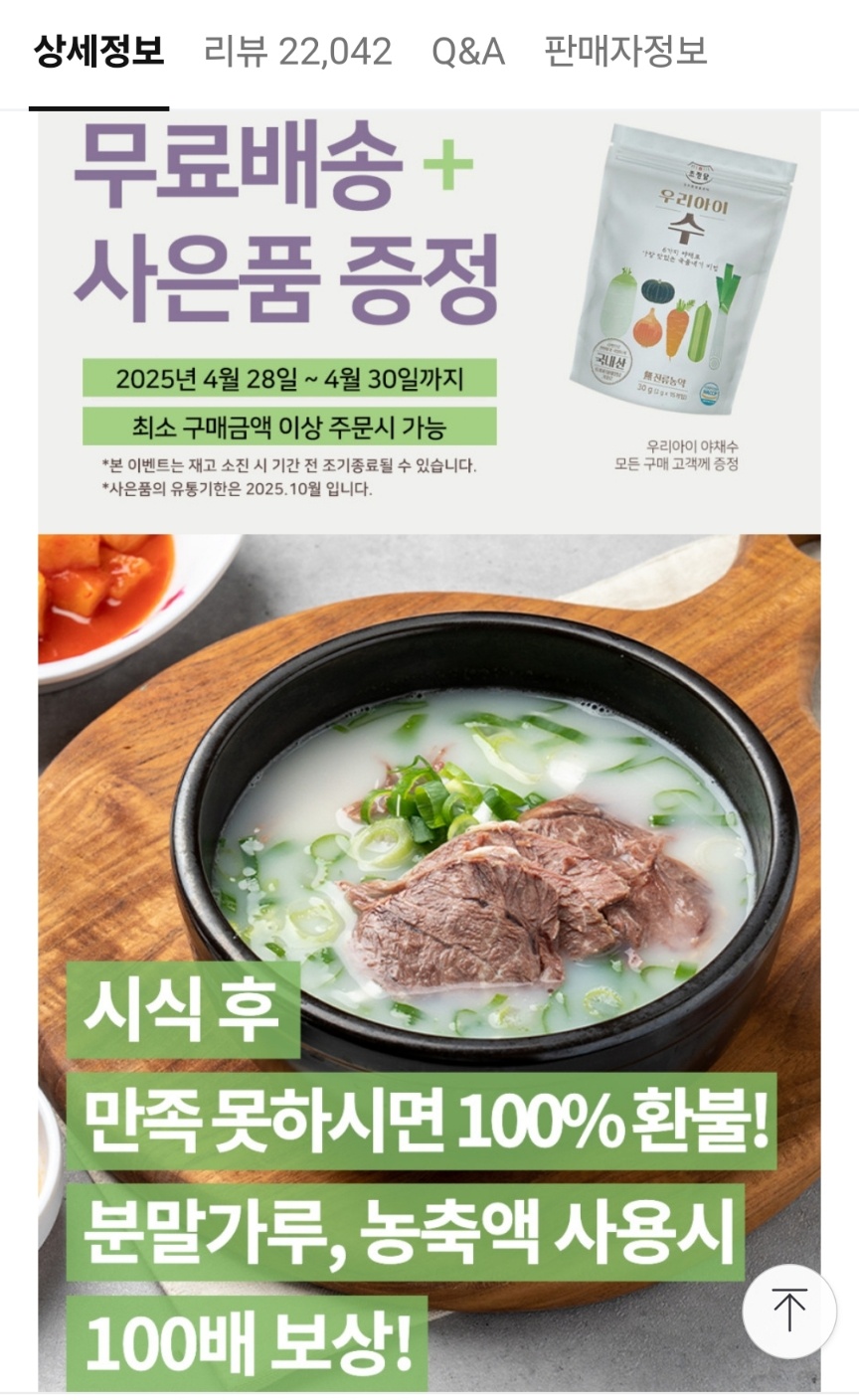 [네이버] 초정담 한우 사골곰탕 무항생제 설렁탕 (500ml) (5300원/무배)