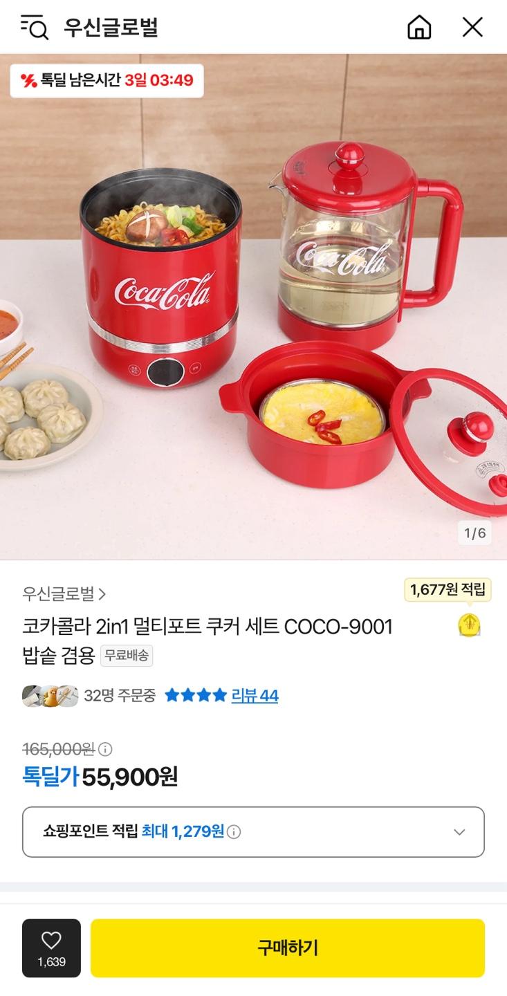 [카카오] 코카콜라 2in1 멀티포트 쿠커 세트 COCO-9001 (55,900원/무료) > 국내핫딜