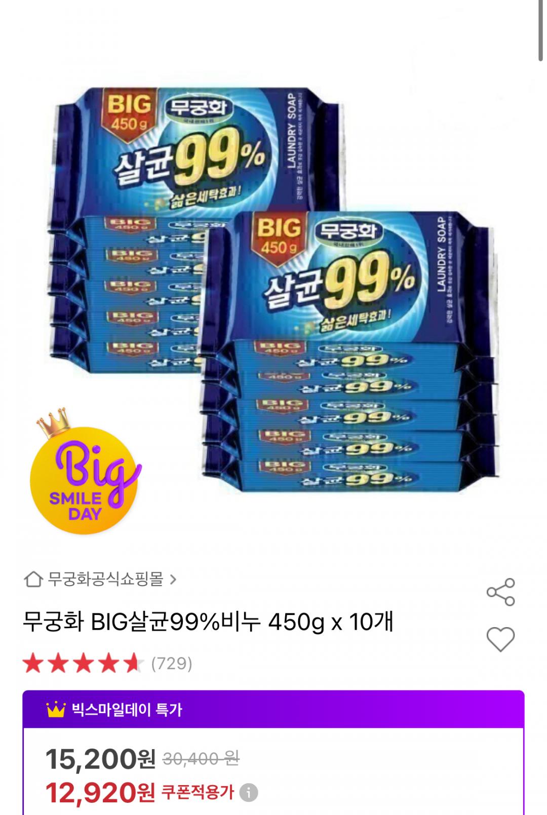 [옥션]무궁화 Big 살균 비누 450g 10개 (12,960원/무료)