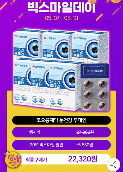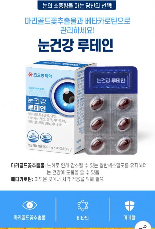 1캡슐당 루테인 20mg 함유되어있고 베타카로틴도 0.42mg 함유되어 있습니다.
