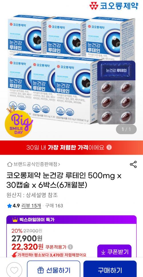1박스당 3,720원정도하는데 6개월 대용량인데도 불구하고 가격