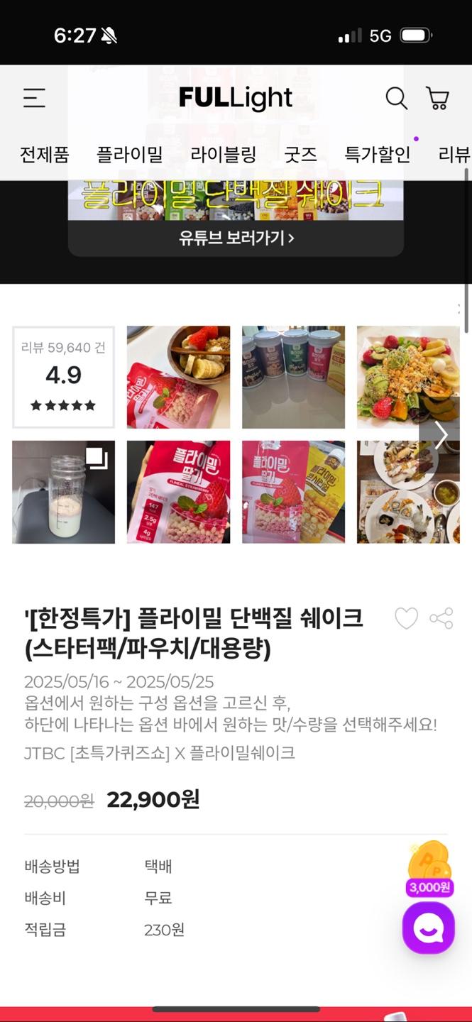 플라이밀 단백질 쉐이크 스타터팩 19,900