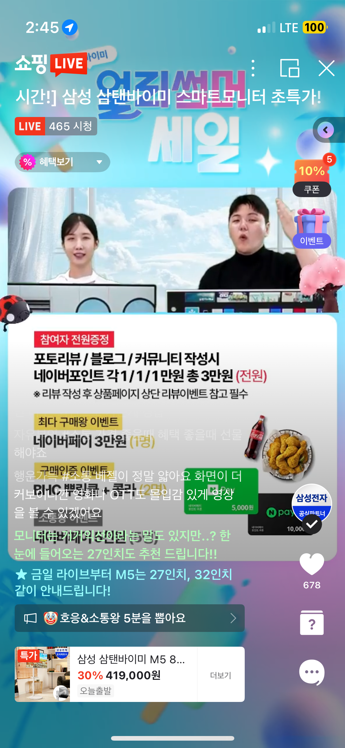 삼탠바이미 네이버 라이브 1시간동안 진행하네요