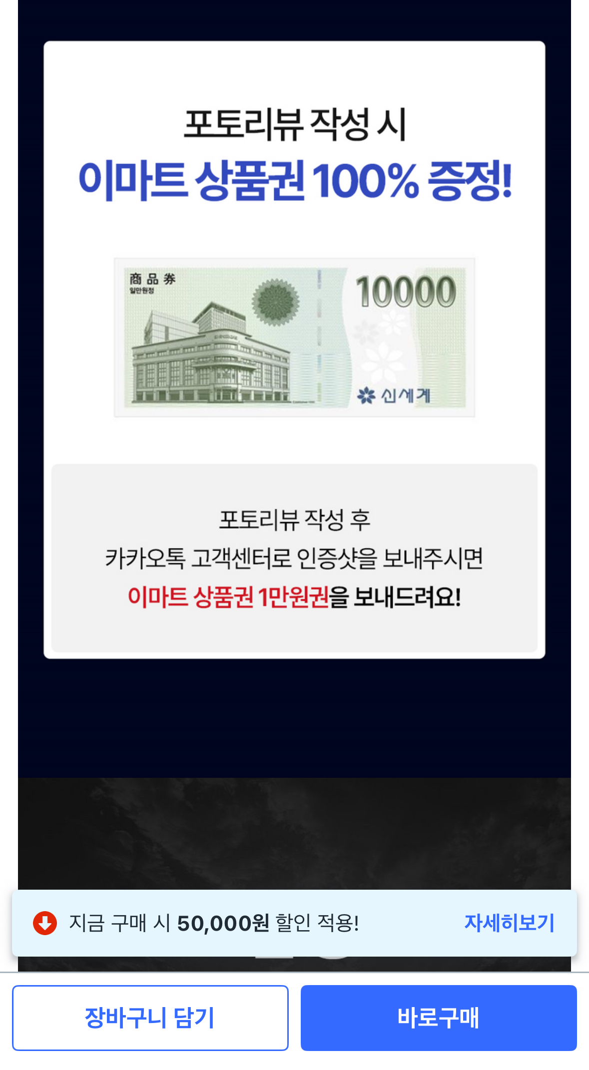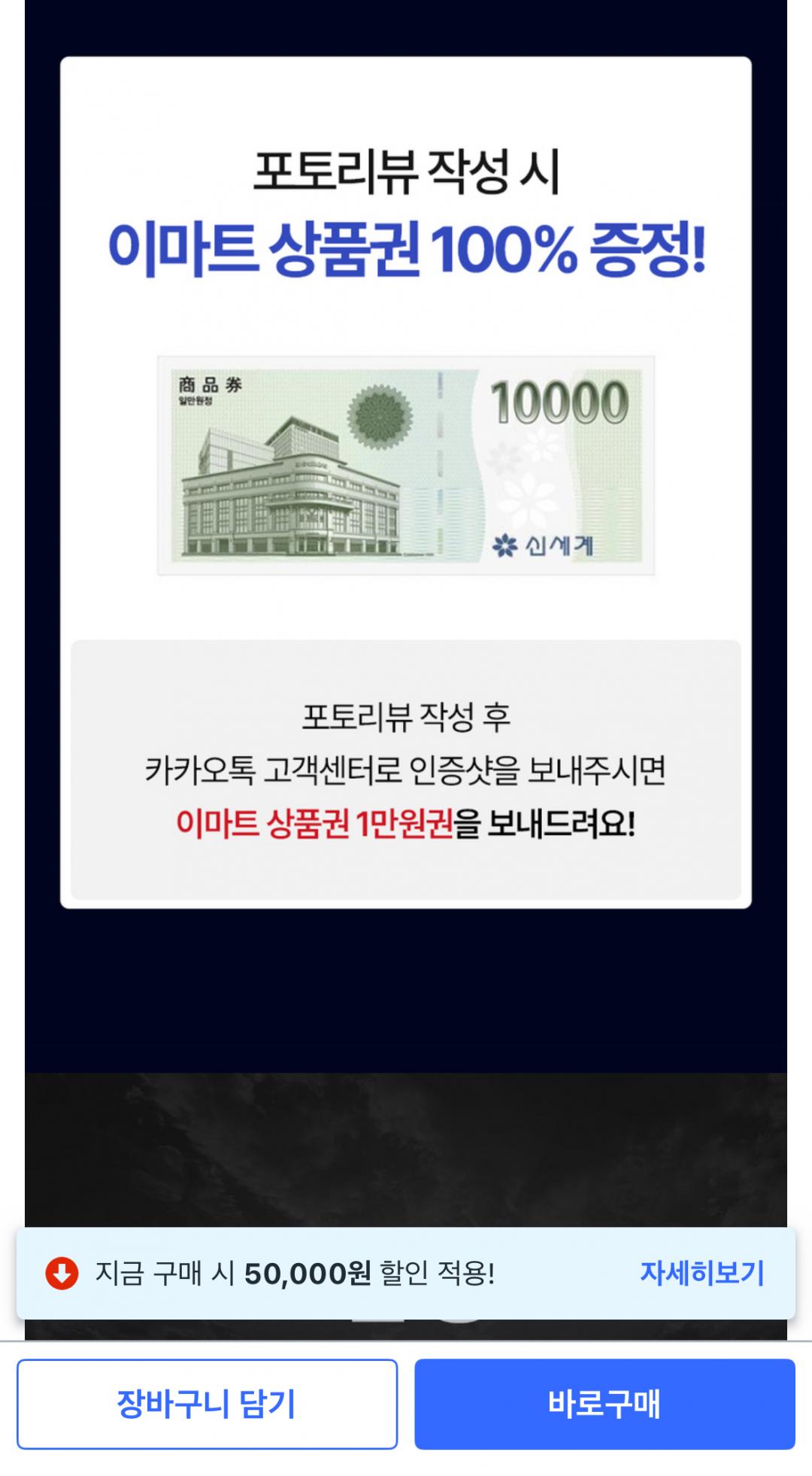 평생 A/S 보장도 되고, 포토리뷰 작성하면 이마트 상품권 1만원권 추가 지급됩니다